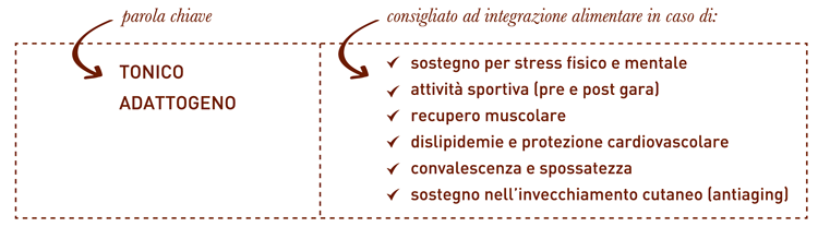 Preziosi polisaccaridi di cui 4 esclusivi che rinforzano il sistema immunitario e proteggono il corpo dagli agenti inquinanti, carotenoidi, minerali tra cui il germanio, prezioso antiossidante molto raro negli alimenti, rame, ferro, fosforo e manganese per il normale metabolismo energetico, potassio e magnesio per la normale funzione muscolare, zinco e cromo per il metabolismo dei macronutrienti.